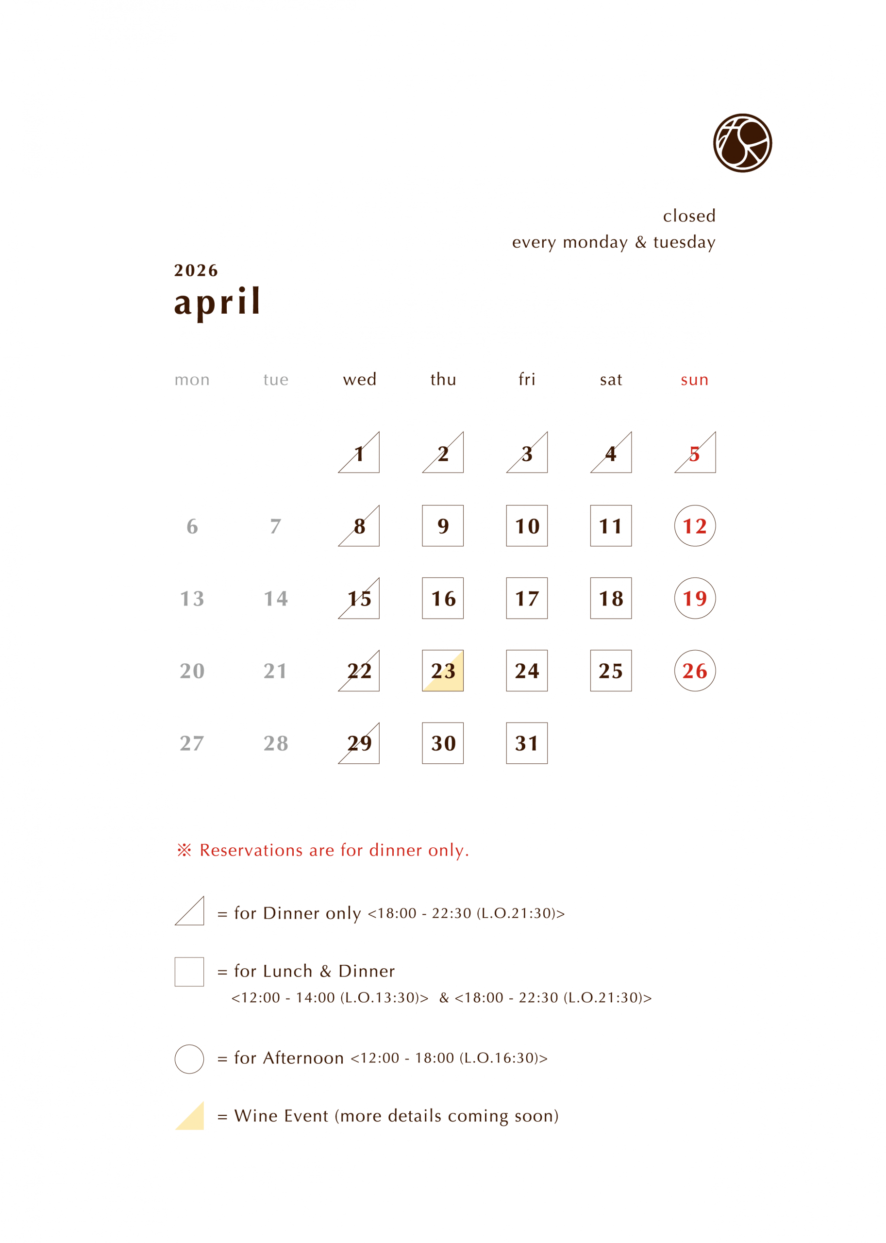 Opening hours of April